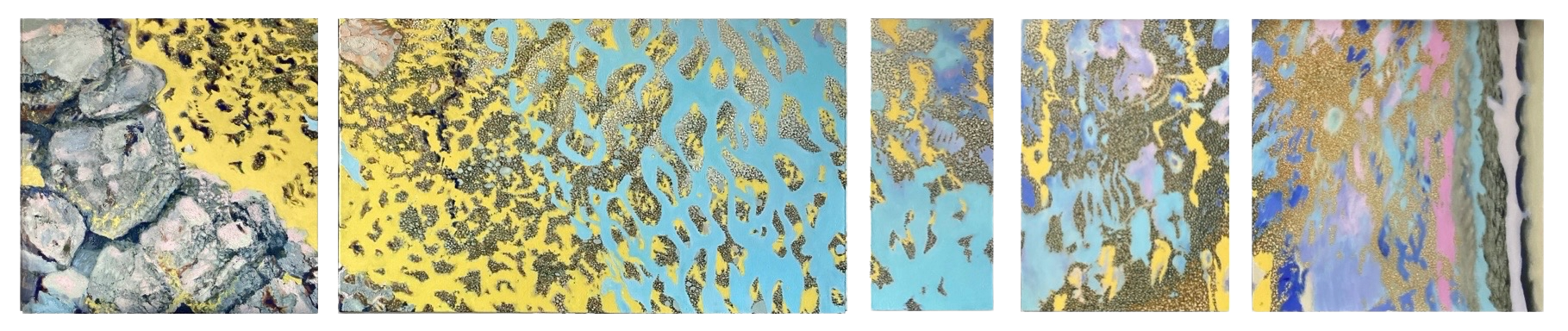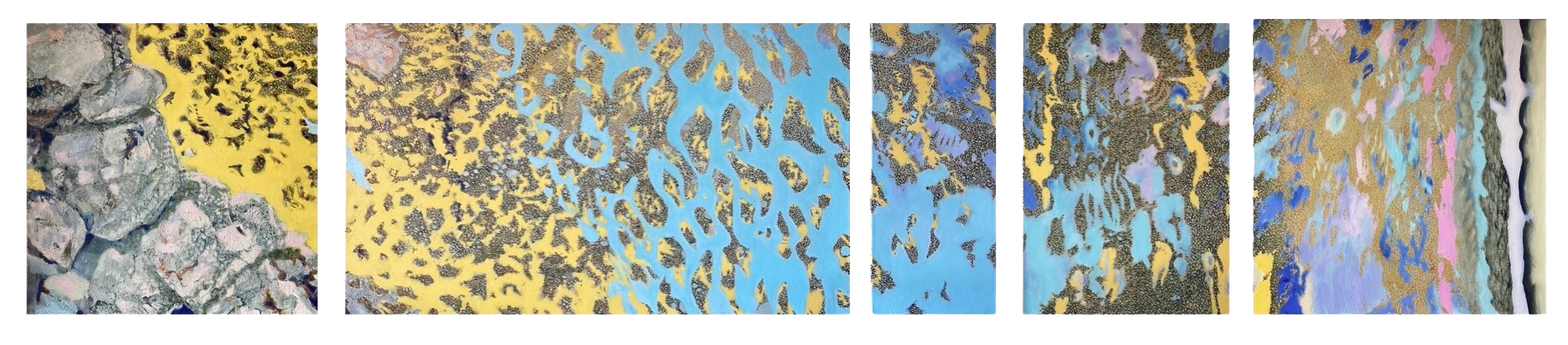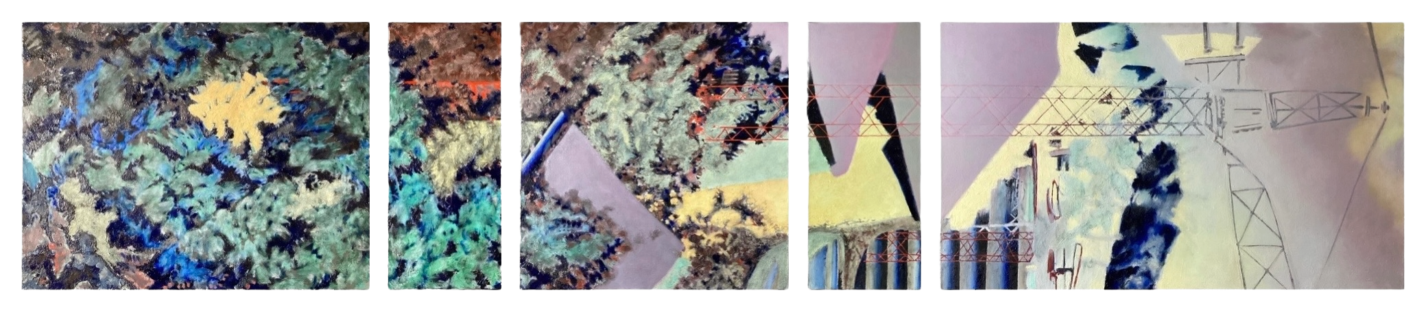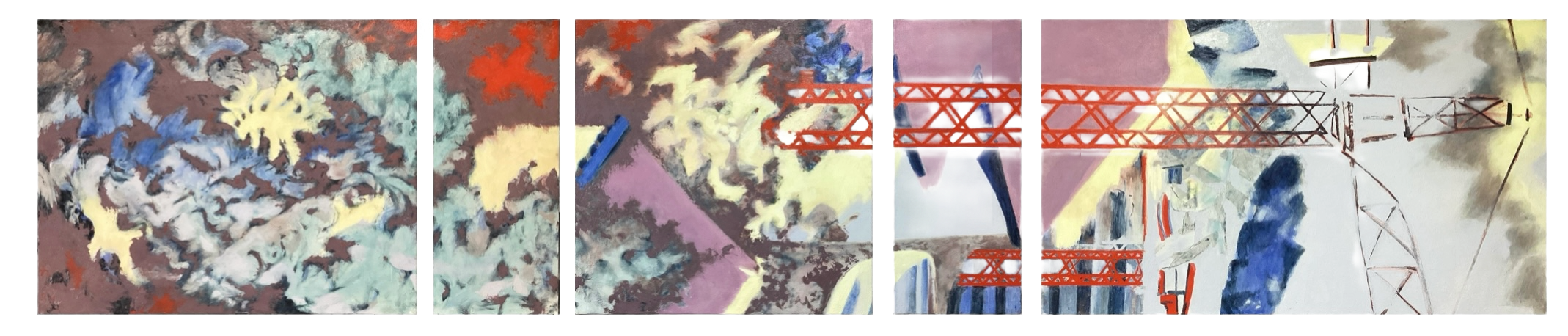 peints parfois en plusieurs mois sur la toile découpée, tendue, encollée et blanchie à la main par application de pigments broyés à l’huile, constituent chacun un ensemble de trois à six tableaux d’une hauteur fixe de septante centimètres et d’une largeur variant de 30 à 120 centimètres.